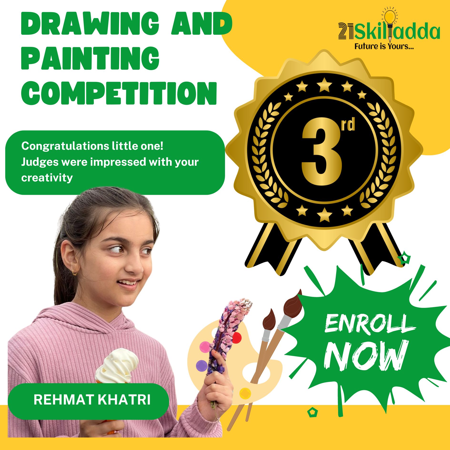 A great place to present skills and talent of kids! Good initiative.Great opportunity for lil artists.Thanks for the enitre Team 21skilladda